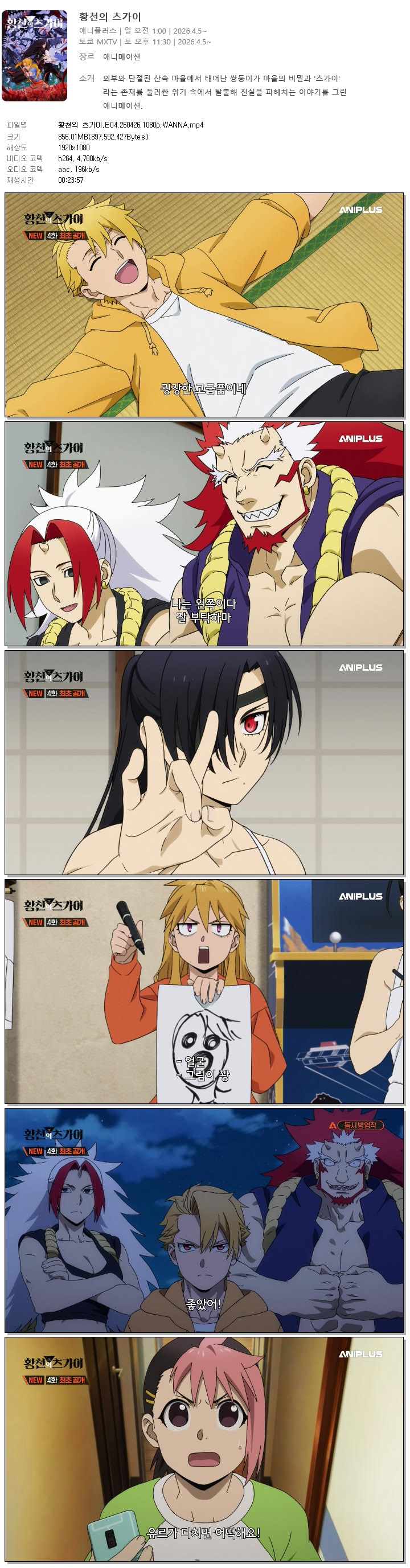 애니 황천의 츠가이 E04 황천의 츠가이.E04.260426.1080p.WANNA 홀리*** 2026-04-26 4,425 856 MB 다운로드 파일 1개 황천의 츠가이.E04.260426.1080p.WANNA.mp4 856 MB TAGS 황천의 츠가이 E04 WANNA 추천 489 북마크 공유 목록