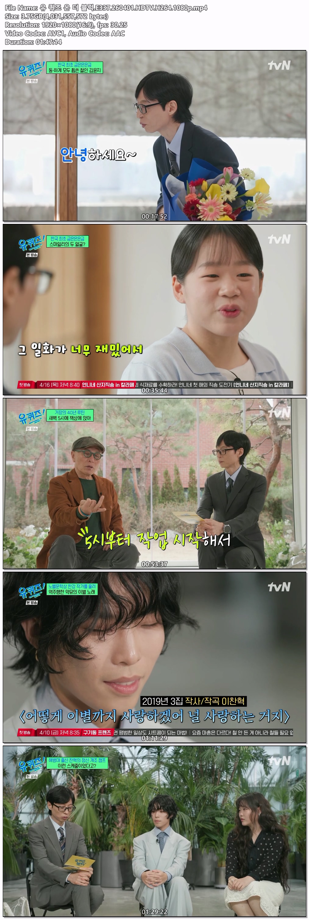 동영상 퀴즈 블럭 E337 HOT 유 퀴즈 온 더 블럭.E337.260401.HDTV.H264.1080p iq*** 2026-04-01 5,187 3.8 GB 다운로드 파일 1개 유 퀴즈 온 더 블럭.E337.260401.HDTV.H264.1080p.mp4 3.8 GB TAGS 퀴즈 블럭 E337 추천 432 북마크 공유 목록