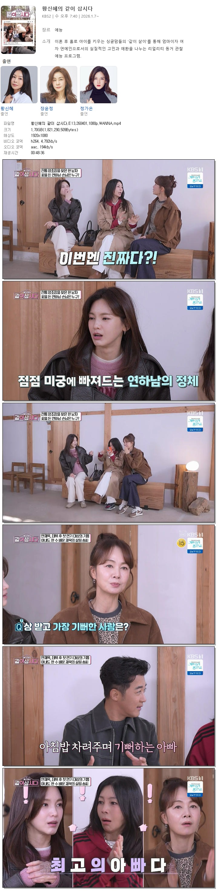 동영상 황신혜의 같이 삽시다 황신혜의 같이 삽시다.E13.260401.1080p.WANNA 홀리*** 2026-04-01 4,147 1.7 GB 다운로드 파일 1개 황신혜의 같이 삽시다.E13.260401.1080p.WANNA.mp4 1.7 GB TAGS 황신혜의 같이 삽시다 E13 WANNA 추천 449 북마크 공유 목록