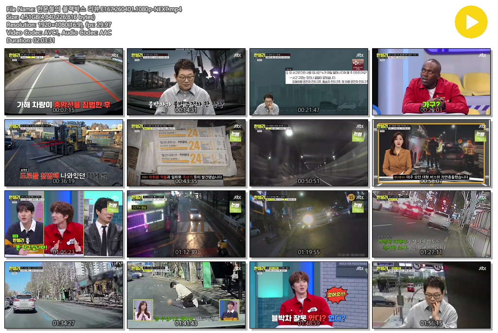 동영상 한문철의 블랙박스 리뷰 한문철의 블랙박스 리뷰.E167.260401.1080p-NEXT se*** 2026-04-01 3,682 4.6 GB 다운로드 파일 1개 한문철의 블랙박스 리뷰.E167.260401.1080p-NEXT.mp4 4.6 GB TAGS 한문철의 블랙박스 리뷰 E167 NEXT 추천 365 북마크 공유 목록