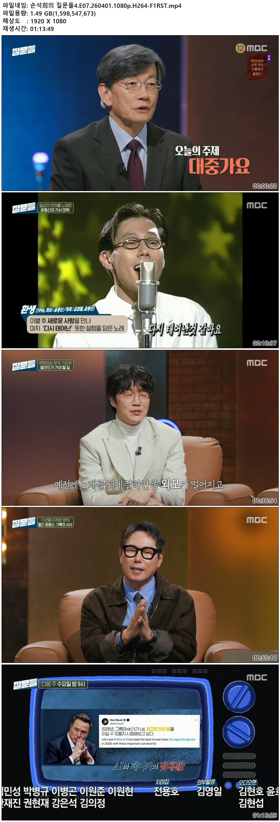 동영상 손석희의 질문들4 E07 HOT 손석희의 질문들4.E07.260401.1080p.H264-F1RST qk*** 2026-04-01 7,219 1.5 GB 다운로드 파일 1개 손석희의 질문들4.E07.260401.1080p.H264-F1RST.mp4 1.5 GB TAGS 손석희의 질문들4 E07 F1RST 추천 397 북마크 공유 목록