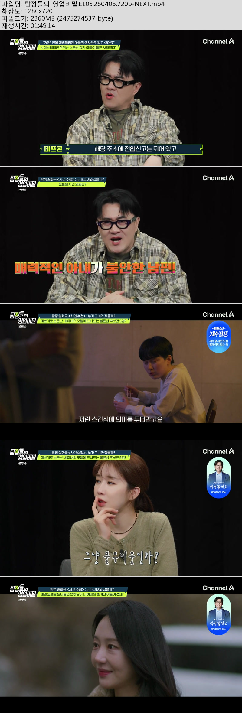 동영상 탐정들의 영업비밀 E105 탐정들의 영업비밀.E105.260406.720p-NEXT kk*** 2026-04-10 3,407 2.3 GB 다운로드 파일 1개 탐정들의 영업비밀.E105.260406.720p-NEXT.mp4 2.3 GB TAGS 탐정들의 영업비밀 E105 NEXT 추천 281 북마크 공유 목록
