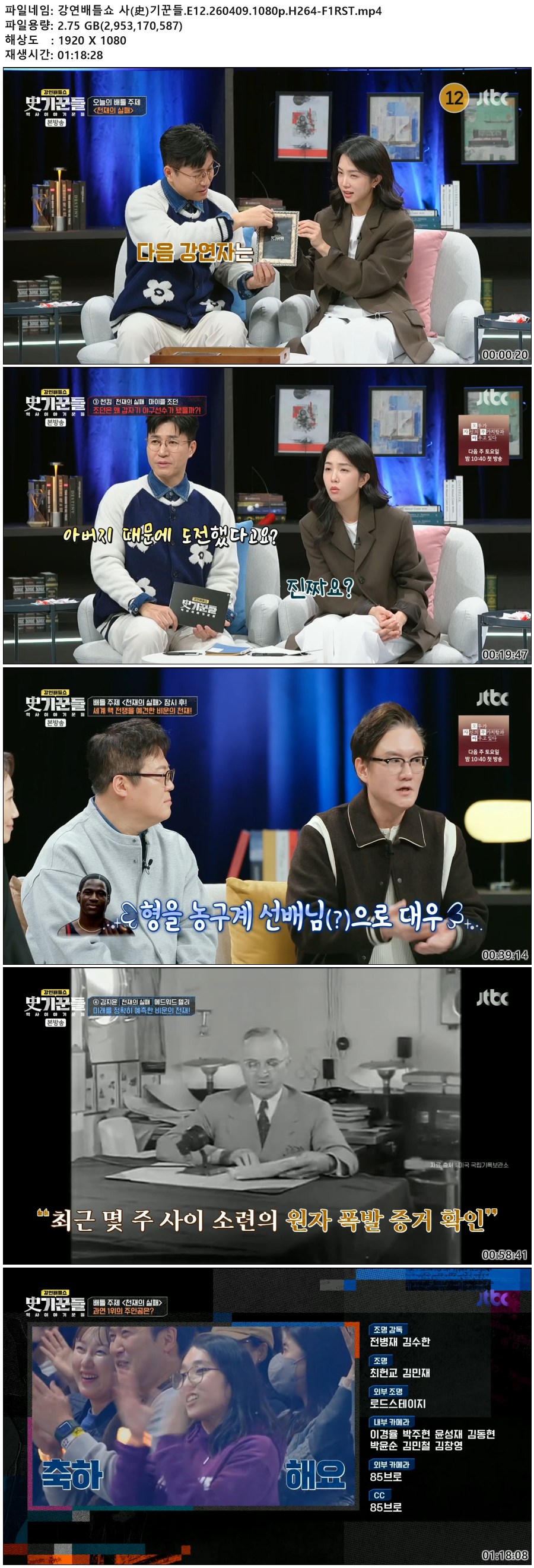 동영상 강연배틀쇼 기꾼들 E12 강연배틀쇼 사(史)기꾼들.E12.260409.1080p.H264-F1RST qk*** 2026-04-10 3,895 2.8 GB 다운로드 파일 1개 강연배틀쇼 사(史)기꾼들.E12.260409.1080p.H264-F1RST.mp4 2.8 GB TAGS 강연배틀쇼 기꾼들 E12 F1RST 추천 315 북마크 공유 목록