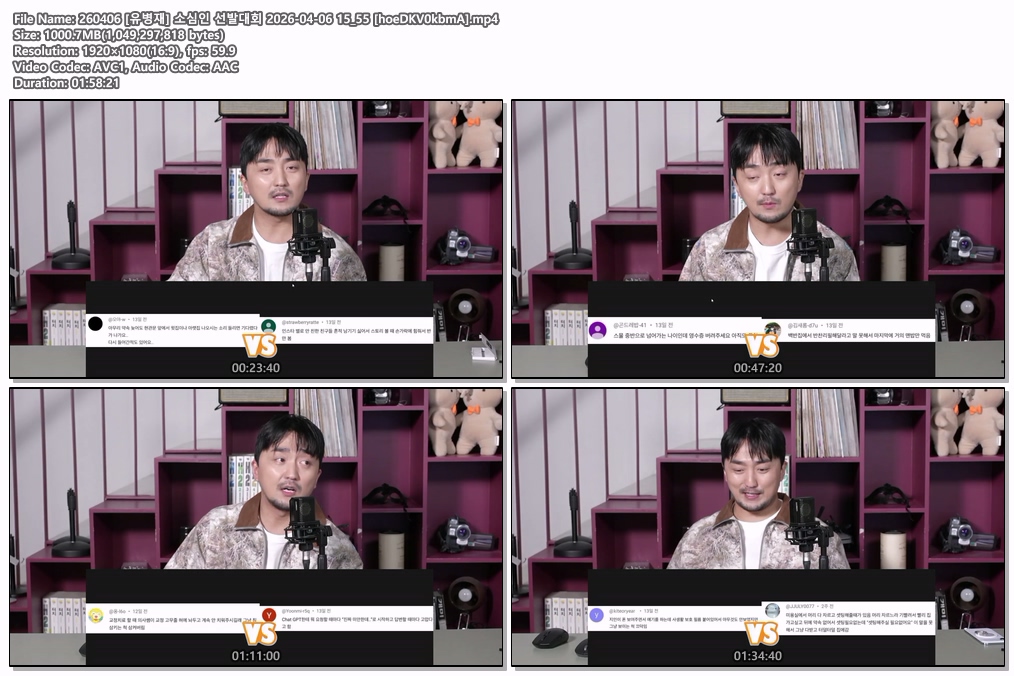 동영상 유병재 소심인 선발대회 260406 [유병재] 소심인 선발대회 he*** 2026-04-11 4,816 1,001 MB 다운로드 파일 1개 260406 [유병재] 소심인 선발대회 2026-04-06 15_55 [hoeDKV0kbmA].mp4 1,001 MB TAGS 유병재 소심인 선발대회 hoeDKV0kbmA 추천 470 북마크 공유 목록