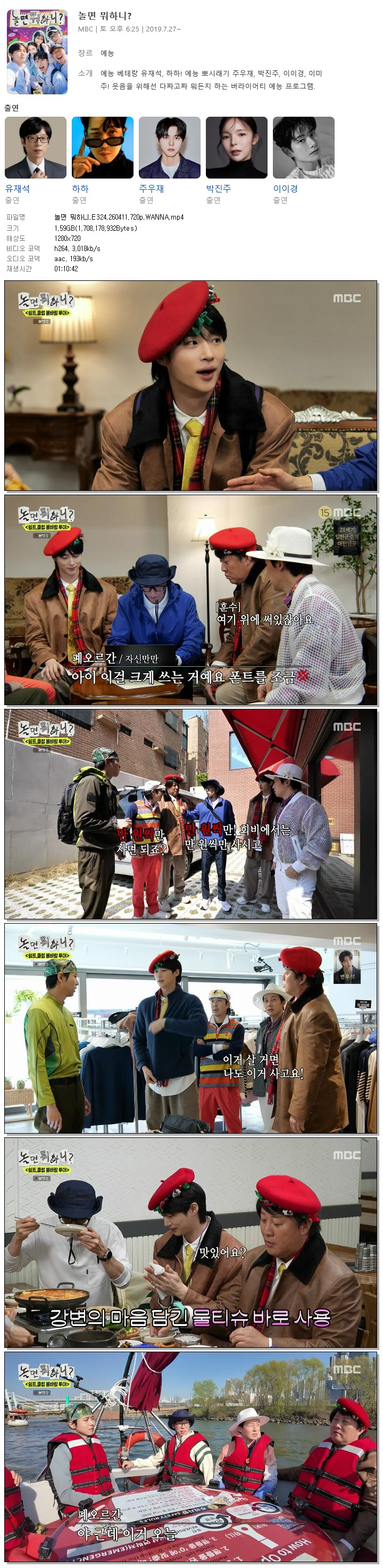 동영상 놀면 뭐하니 E324 HOT 놀면 뭐하니.E324.260411.720p.WANNA 바오*** 2026-04-11 6,190 1.6 GB 다운로드 파일 1개 놀면 뭐하니.E324.260411.720p.WANNA.mp4 1.6 GB TAGS 놀면 뭐하니 E324 WANNA 추천 455 북마크 공유 목록