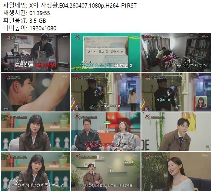 동영상 X의 사생활 E04 HOT X의 사생활.E04.260407.1080p.H264-F1RST zn*** 2026-04-11 6,484 3.5 GB 다운로드 파일 1개 X의 사생활.E04.260407.1080p.H264-F1RST.mp4 3.5 GB TAGS X의 사생활 E04 F1RST 추천 459 북마크 공유 목록