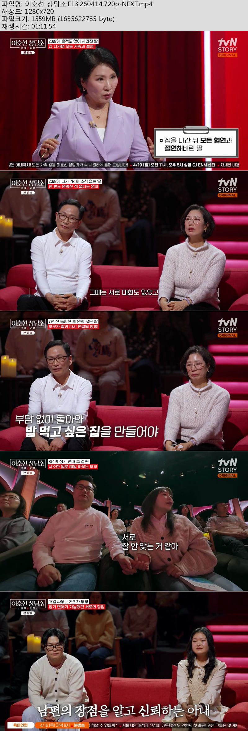 동영상 이호선 상담소 E13 HOT 이호선 상담소.E13.260414.720p-NEXT 켓츠*** 2026-04-14 7,837 1.5 GB 다운로드 파일 1개 이호선 상담소.E13.260414.720p-NEXT.mp4 1.5 GB TAGS 이호선 상담소 E13 NEXT 추천 410 북마크 공유 목록