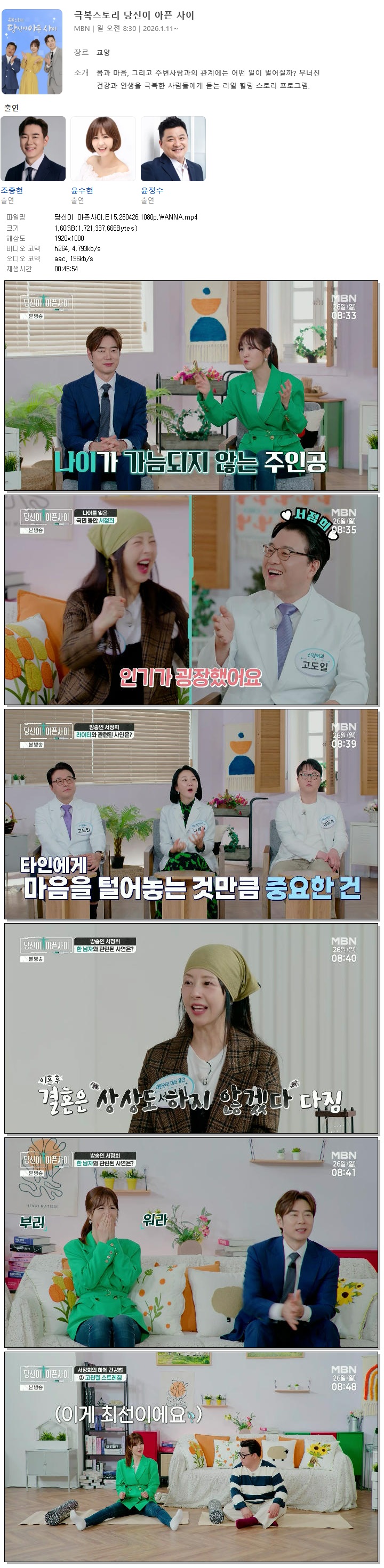 동영상 당신이 아픈사이 E15 HOT 당신이 아픈사이.E15.260426.1080p.WANNA 홀리*** 2026-04-27 7,201 1.6 GB 다운로드 파일 1개 당신이 아픈사이.E15.260426.1080p.WANNA.mp4 1.6 GB TAGS 당신이 아픈사이 E15 WANNA 추천 379 북마크 공유 목록
