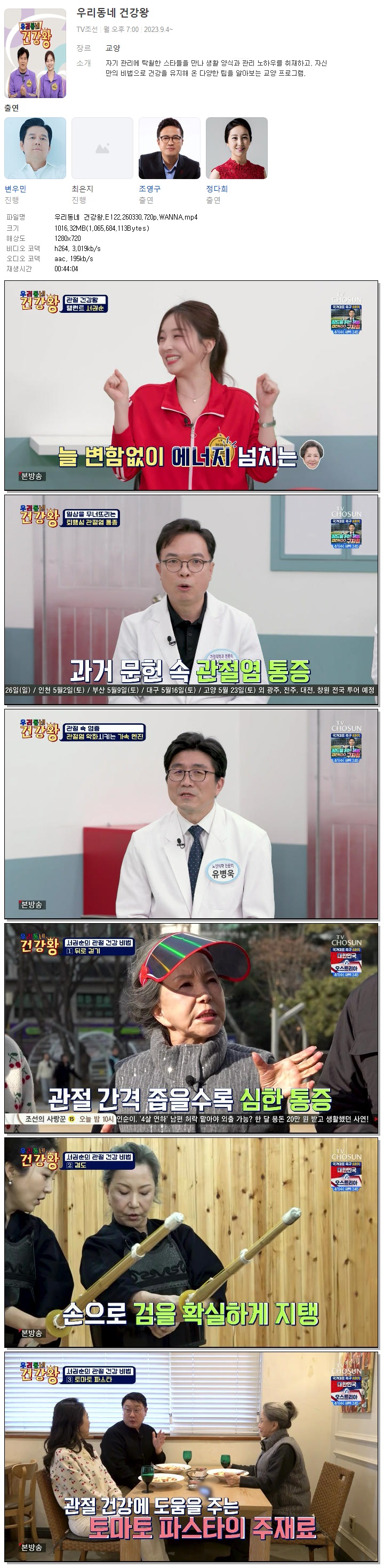 동영상 우리동네 건강왕 E122 HOT 우리동네 건강왕.E122.260330.720p.WANNA 바오*** 2026-03-30 7,583 1,016 MB 다운로드 파일 1개 우리동네 건강왕.E122.260330.720p.WANNA.mp4 1,016 MB TAGS 우리동네 건강왕 E122 WANNA 추천 473 북마크 공유 목록