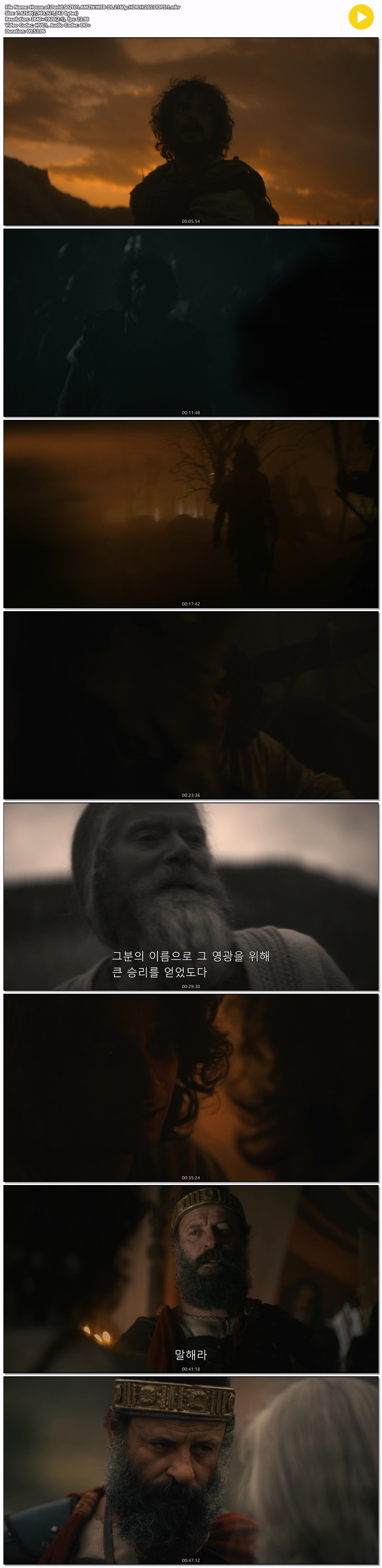 드라마 완결 다윗의 왕국 [4K 완결] 다윗의 왕국 시즌2 E01~E04. 8부작.2025.2160p.AMZN.WEB ro*** 2026-04-01 3,307 31.9 GB 다운로드 파일 8개 House.of.David.S02E01.AMZN.WEB-DL.2160p.HDR.H.265.DDP5.1.mkv 31.9 GB House.of.David.S02E01.AMZN.WEB-DL.2160p.HDR.H.265.DDP5.1.srt House.of.David.S02E02.AMZN.WEB-DL.2160p.HDR.H.265.DDP5.1.mkv House.of.David.S02E02.AMZN.WEB-DL.2160p.HDR.H.265.DDP5.1.srt House.of.David.S02E03.AMZN.WEB-DL.2160p.HDR.H.265.DDP5.1.mkv House.of.David.S02E03.AMZN.WEB-DL.2160p.HDR.H.265.DDP5.1.srt House.of.David.S02E04.AMZN.WEB-DL.2160p.HDR.H.265.DDP5.1.mkv House.of.David.S02E04.AMZN.WEB-DL.2160p.HDR.H.265.DDP5.1.srt TAGS 완결 다윗의 왕국 시즌2 E01 추천 255 북마크 공유 목록