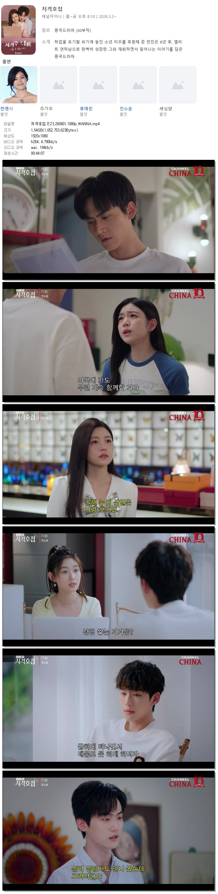 드라마 저격호접 E23 WANNA HOT 저격호접.E23.260401.1080p.WANNA 홀리*** 2026-04-01 5,677 1.5 GB 다운로드 파일 1개 저격호접.E23.260401.1080p.WANNA.mp4 1.5 GB TAGS 저격호접 E23 WANNA 추천 322 북마크 공유 목록