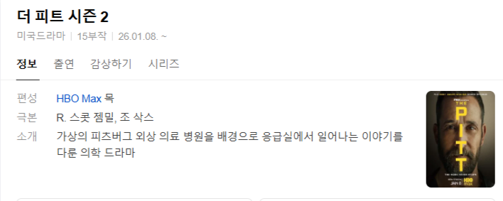 드라마 피트 시즌2 E11 더 피트 시즌2.E11-E14.1080p 10bit WEBRip iq*** 2026-04-14 4,400 2.5 GB 참고; HEVC코덱 영상한글자막 파일 첨부 다운로드 파일 8개 The.Pitt.S02E11 1080p 10bit WEBRip 6CH x265 HEVC-PSA.mkv 2.5 GB The.Pitt.S02E11 1080p 10bit WEBRip 6CH x265 HEVC-PSA.srt The.Pitt.S02E12 1080p 10bit WEBRip 6CH x265 HEVC-PSA.mkv The.Pitt.S02E12 1080p 10bit WEBRip 6CH x265 HEVC-PSA.srt The.Pitt.S02E13 1080p 10bit WEBRip 6CH x265 HEVC-PSA.mkv The.Pitt.S02E13 1080p 10bit WEBRip 6CH x265 HEVC-PSA.srt The.Pitt.S02E14 1080p 10bit WEBRip 6CH x265 HEVC-PSA.mkv The.Pitt.S02E14 1080p 10bit WEBRip 6CH x265 HEVC-PSA.srt TAGS 피트 시즌2 E11 E14 10bit 추천 320 북마크 공유 목록
