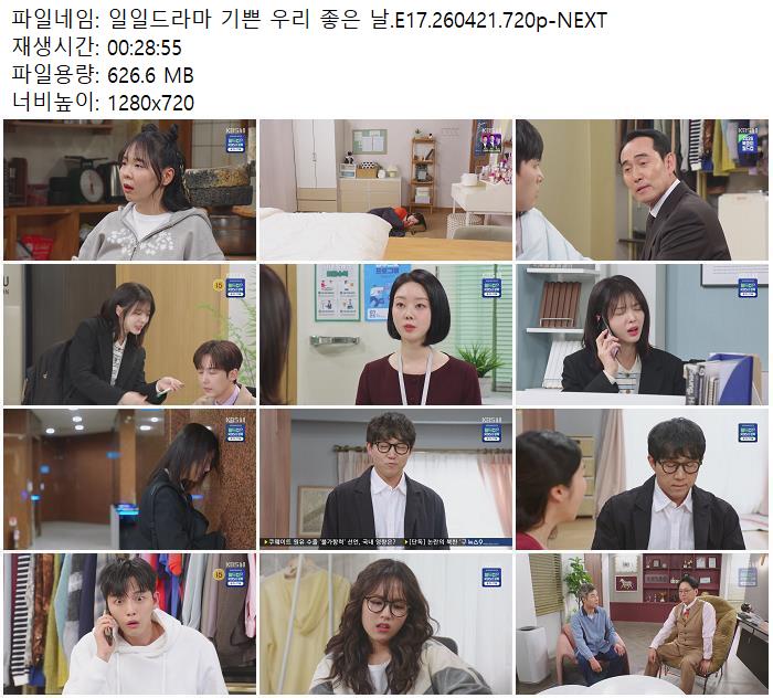 드라마 일일드라마 기쁜 우리 HOT 일일드라마 기쁜 우리 좋은 날.E17.260421.720p-NEXT zn*** 2026-04-28 7,906 627 MB 다운로드 파일 1개 일일드라마 기쁜 우리 좋은 날.E17.260421.720p-NEXT.mp4 627 MB TAGS 일일드라마 기쁜 우리 좋은 E17 추천 270 북마크 공유 목록