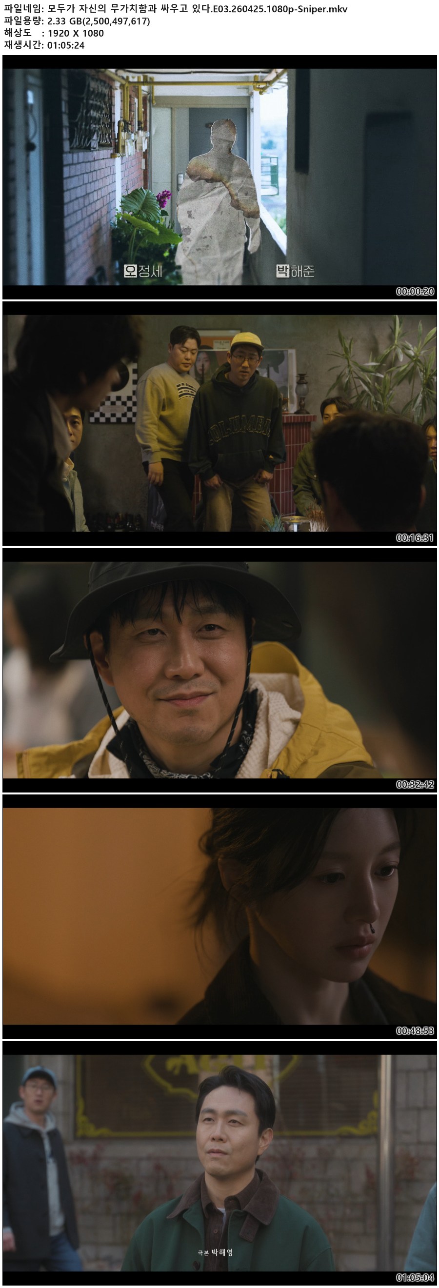 드라마 모두가 자신의 무가치함과 모두가 자신의 무가치함과 싸우고 있다.E03.260425.1080p-Sniper qk*** 2026-04-28 3,136 2.3 GB 다운로드 파일 1개 모두가 자신의 무가치함과 싸우고 있다.E03.260425.1080p-Sniper.mkv 2.3 GB TAGS 모두가 자신의 무가치함과 싸우고 있다 추천 309 북마크 공유 목록