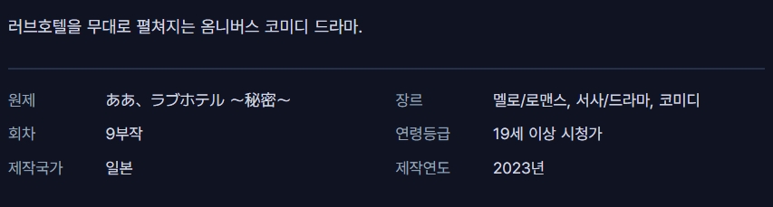 드라마 러브호텔 비밀편 E01 아, 러브호텔 ~비밀편~ E01~E09. 9부작.2023.1080p gg*** 2026-04-28 4,738 7.7 GB 다운로드 파일 9개 아.러브호텔.S01E01.WAVVE.WEB-DL.1080p.H.264.AAC2.0.mkv 7.7 GB 아.러브호텔.S01E02.WAVVE.WEB-DL.1080p.H.264.AAC2.0.mkv 아.러브호텔.S01E03.WAVVE.WEB-DL.1080p.H.264.AAC2.0.mkv 아.러브호텔.S01E04.WAVVE.WEB-DL.1080p.H.264.AAC2.0.mkv 아.러브호텔.S01E05.WAVVE.WEB-DL.1080p.H.264.AAC2.0.mkv 아.러브호텔.S01E06.WAVVE.WEB-DL.1080p.H.264.AAC2.0.mkv 아.러브호텔.S01E07.WAVVE.WEB-DL.1080p.H.264.AAC2.0.mkv 아.러브호텔.S01E08.WAVVE.WEB-DL.1080p.H.264.AAC2.0.mkv 아.러브호텔.S01E09.WAVVE.WEB-DL.1080p.H.264.AAC2.0.mkv TAGS 러브호텔 비밀편 E01 E09 9부작 추천 440 북마크 공유 목록