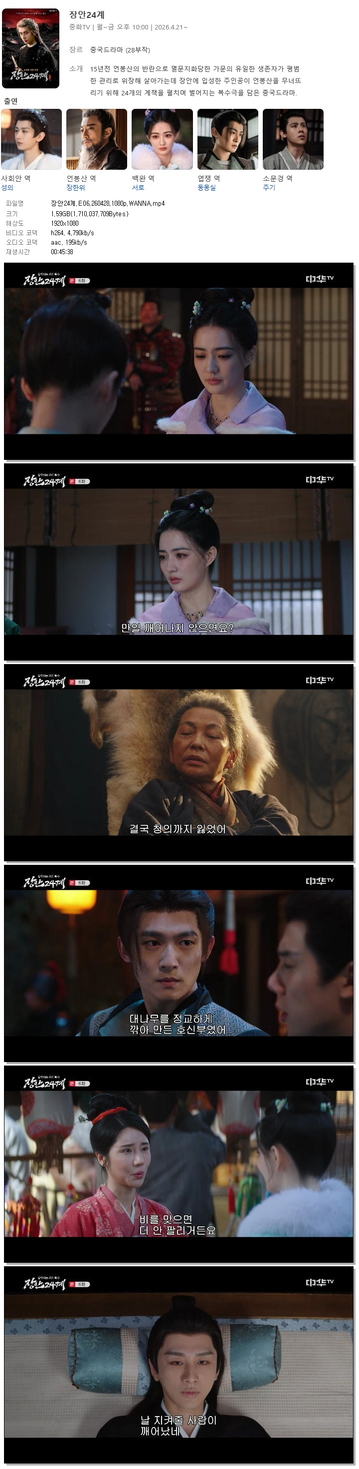 드라마 장안24계 E06 WANNA 장안24계.E06.260428.1080p.WANNA 홀리*** 2026-04-29 3,060 1.6 GB 다운로드 파일 1개 장안24계.E06.260428.1080p.WANNA.mp4 1.6 GB TAGS 장안24계 E06 WANNA 추천 284 북마크 공유 목록
