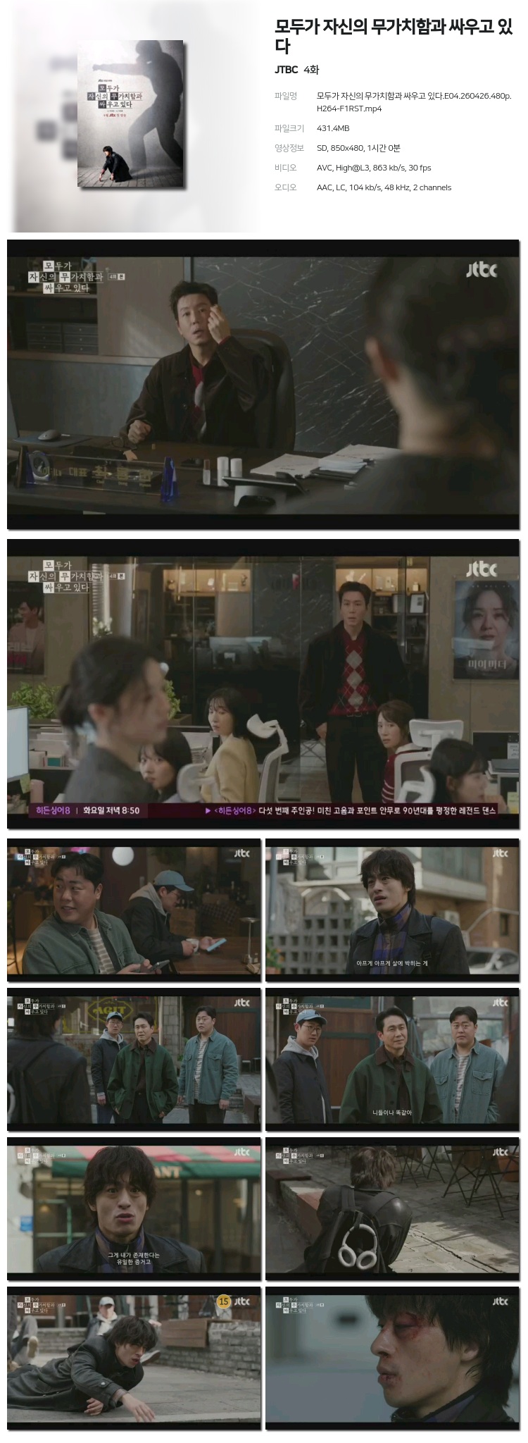 드라마 모두가 자신의 무가치함과 모두가 자신의 무가치함과 싸우고 있다.E04.260426.480p.H264-F1RST 네온*** 2026-04-29 4,726 431 MB 다운로드 파일 1개 모두가 자신의 무가치함과 싸우고 있다.E04.260426.480p.H264-F1RST.mp4 431 MB TAGS 모두가 자신의 무가치함과 싸우고 있다 추천 351 북마크 공유 목록