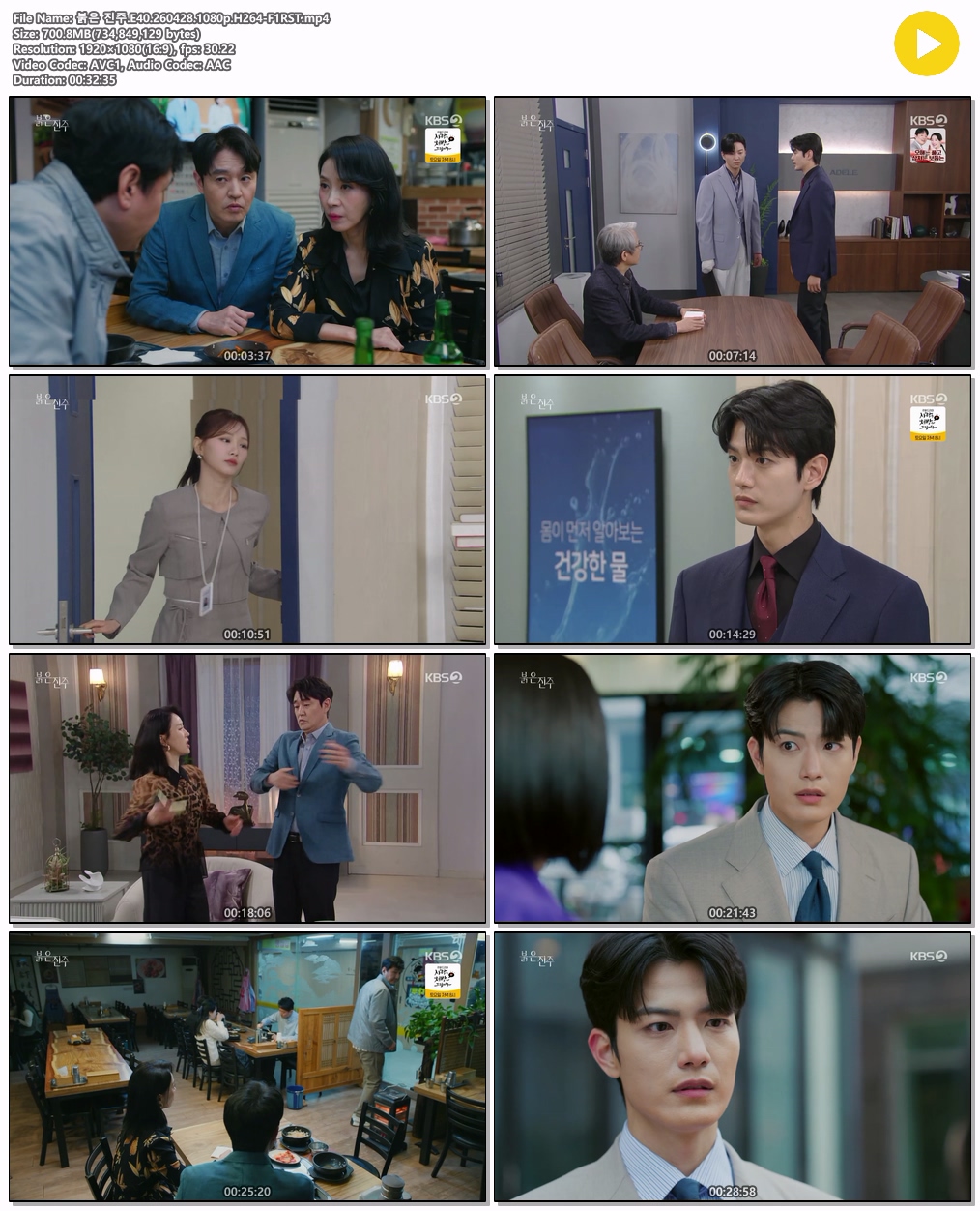 드라마 붉은 진주 E40 HOT 붉은 진주.E40.260428.1080p.H264-F1RST tm*** 2026-04-29 6,942 701 MB 다운로드 파일 1개 붉은 진주.E40.260428.1080p.H264-F1RST.mp4 701 MB TAGS 붉은 진주 E40 H264 F1RST 추천 313 북마크 공유 목록