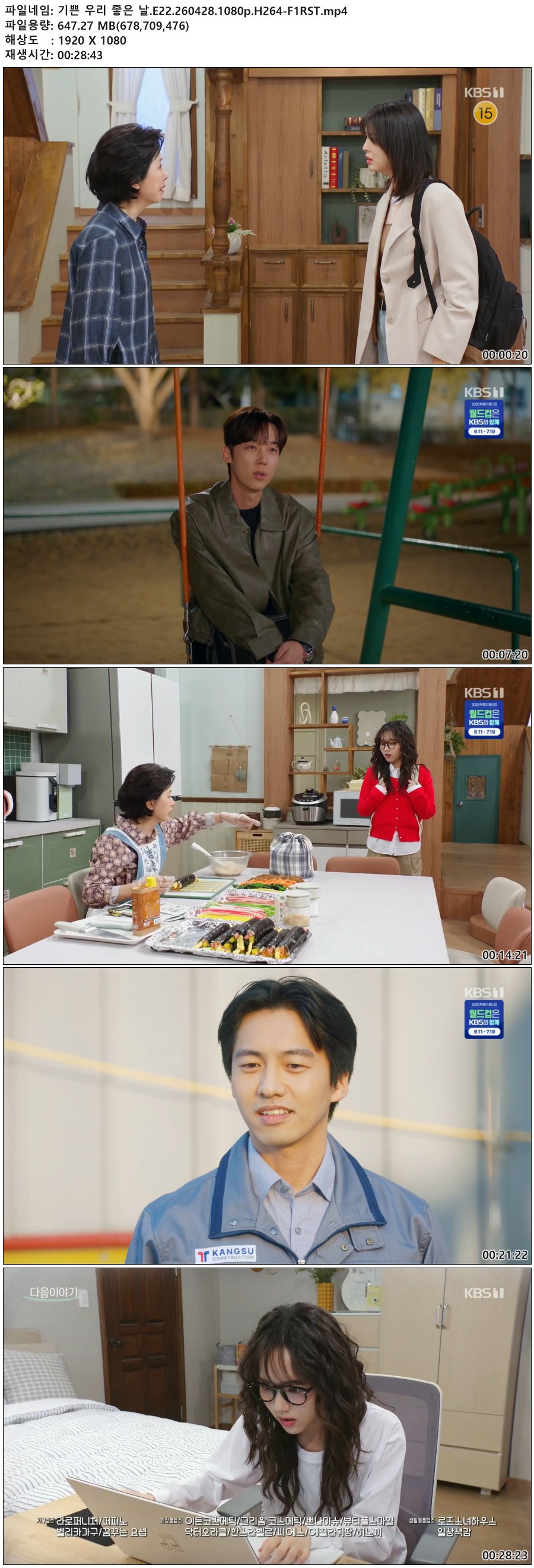드라마 기쁜 우리 좋은 기쁜 우리 좋은 날.E22.260428.1080p.H264-F1RST qk*** 2026-04-29 3,907 647 MB 다운로드 파일 1개 기쁜 우리 좋은 날.E22.260428.1080p.H264-F1RST.mp4 647 MB TAGS 기쁜 우리 좋은 E22 H264 추천 440 북마크 공유 목록