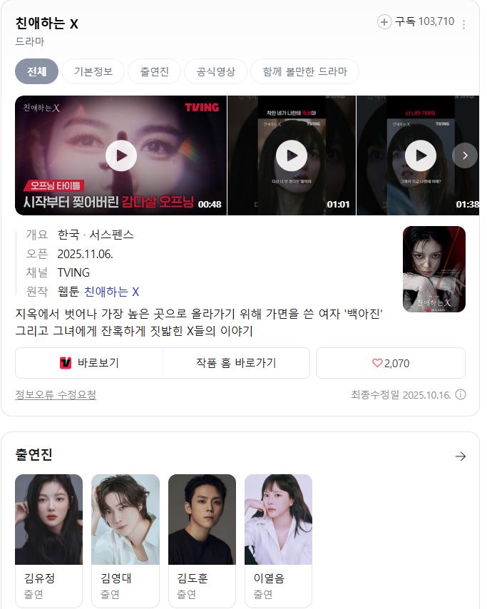 드라마 11월 신작 친ㅇHㅎr는 HOT [11월 신작] 친ㅇHㅎr는 x (01회 - 12회) 완결 [김 유정] 1080p 도리*** 2026-03-29 5,860 5.9 GB 다운로드 파일 1개 디.이.어.mkv 5.9 GB TAGS 11월 신작 친ㅇHㅎr는 01회 12회 추천 218 북마크 공유 목록