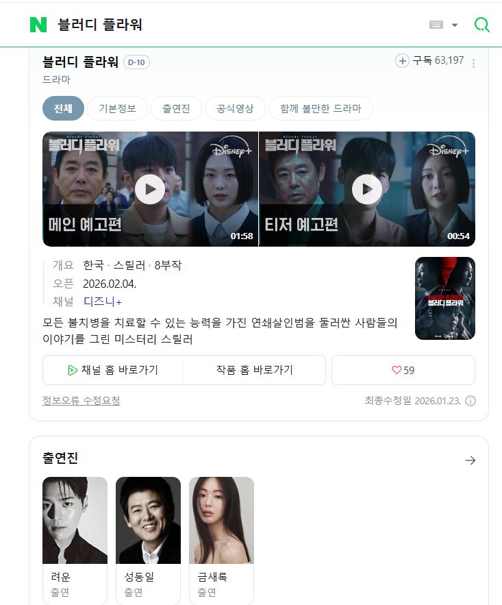 드라마 블러디 플라워 E01 1080p 블러디 플라워 E01-E08 통합2 려운 성동일 금새록 [완결] 하늘*** 2026-03-29 3,786 3.9 GB 다운로드 파일 1개 1080p 블러디 플라워 E01-E08 통합2 려운 성동일 금새록 [완결].mp4 3.9 GB TAGS 블러디 플라워 E01 E08 통합2 추천 418 북마크 공유 목록