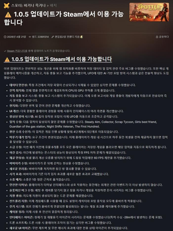 26년 4월 21일 최적화 안정성 업데이트 버전